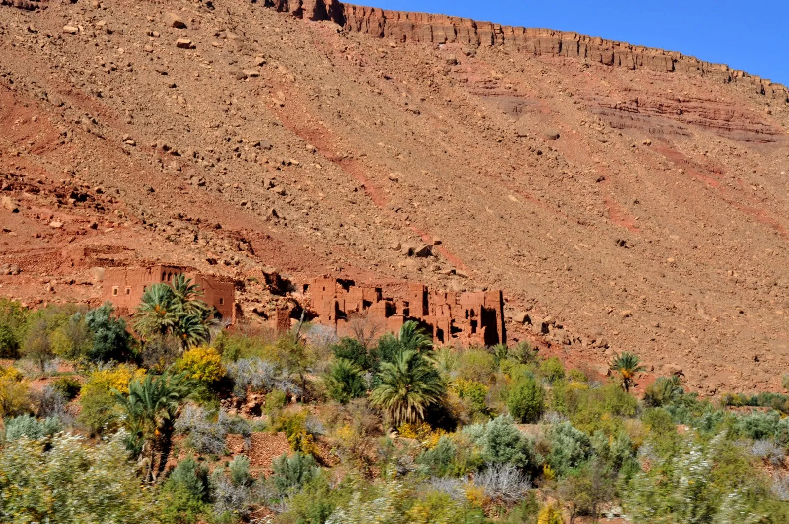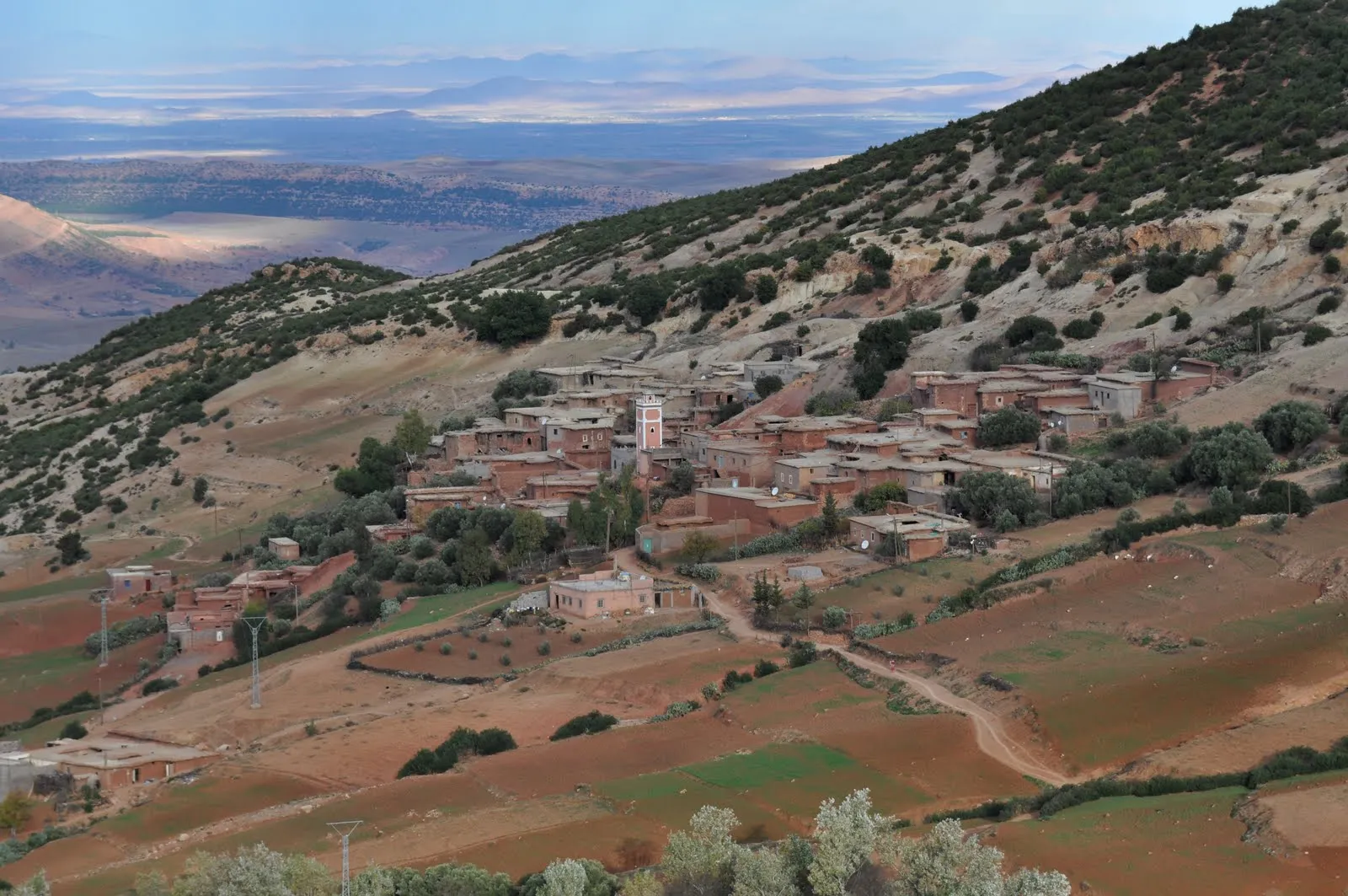 Bien que désertique les montagnes sont habitées et chaque petit lopin de terre irrigué est cultivé. Les moyens sont archaïques mais étonnement il y a partout l'électricité et le téléphone portable capte presque partout, en tout cas mieux que dans les Vosges !