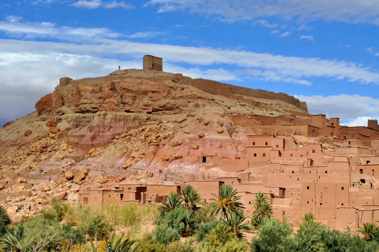 Pour atteindre le Ksar il faut traverser la rivière sur les sacs de sable. Le site est inaccessible dès qu'il pleut ou qu'il y a un orage. Le Ksar est un dédale de ruelles entre de hauts murs, on montera jusqu'en haut à l'ancienne Kasbah au donjon ruiné. Nous visiterons un logement encore habité (20 Dirham).