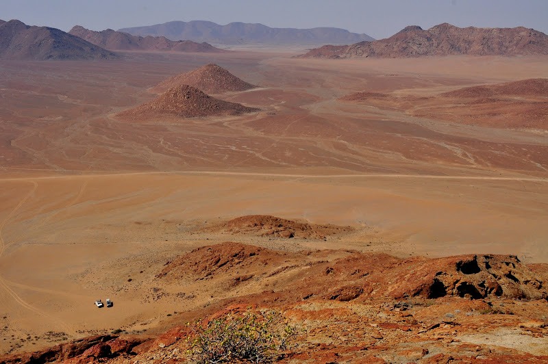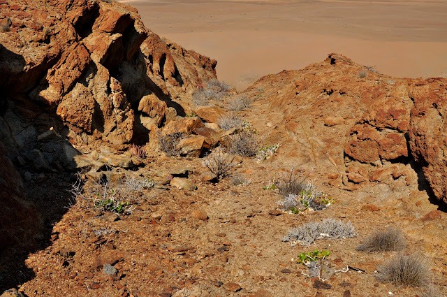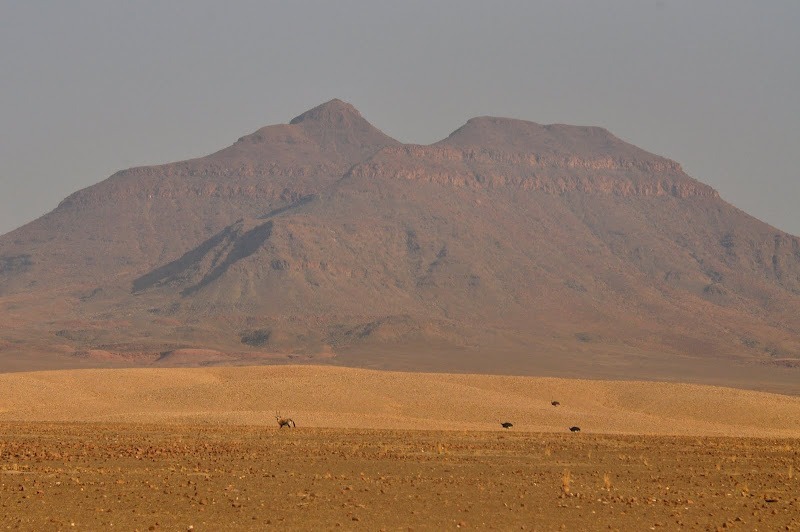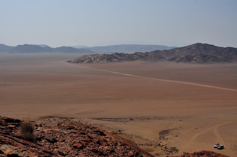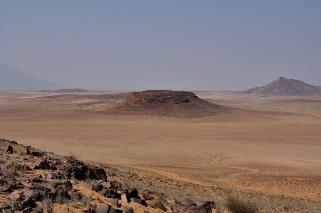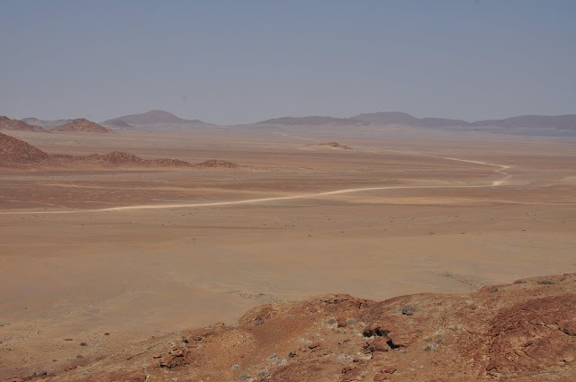 Nous ferons juste un arrêt pour voir une épave de cargo échoué, c’est le grand nombre d’épaves qui a donné le nom de Skeleton Coast à cette côte. Arrivée à Cap Cros (colonie d’Otarie que nous ne visiterons pas) nous nous sommes dirigés nord-est à travers du rien pour rejoindre un site qui se nomme Messum Crater.