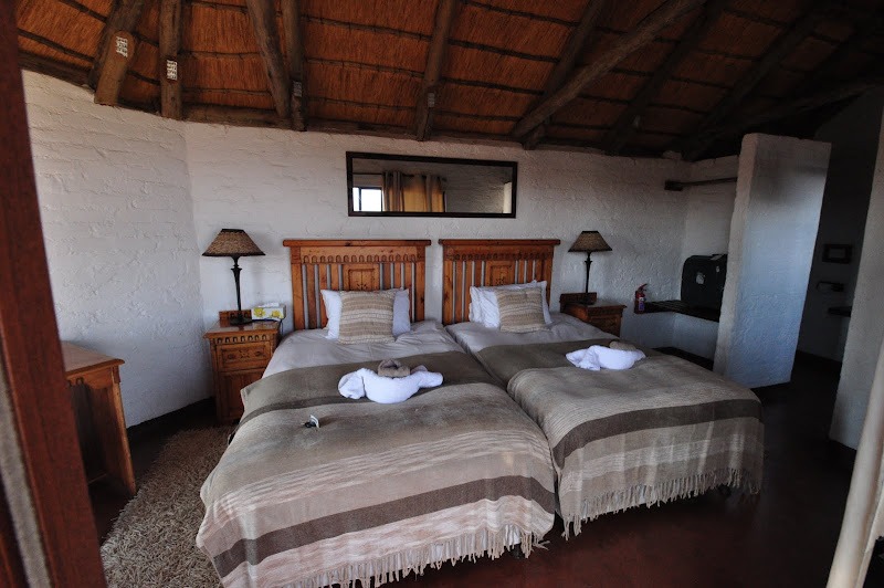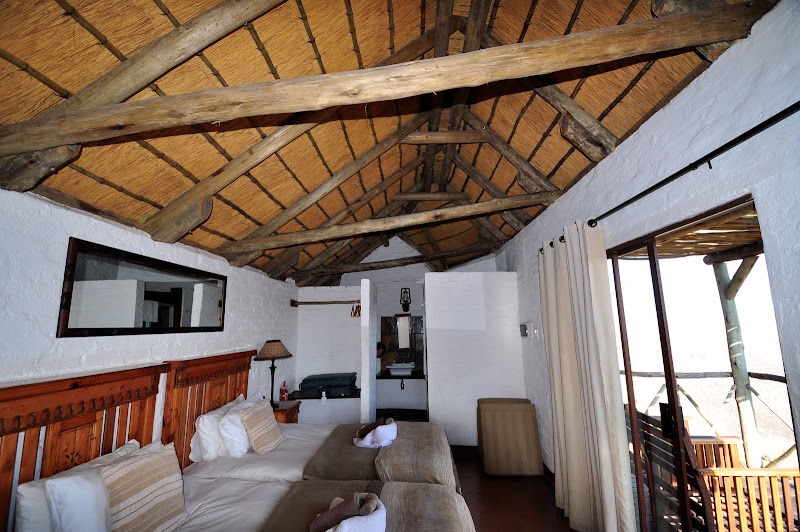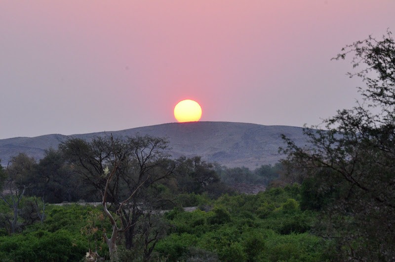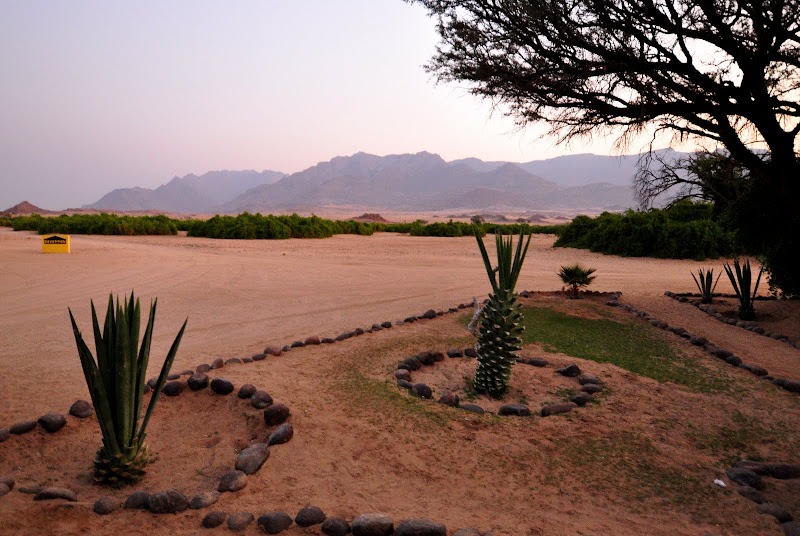 Une fois le plein fait nous rendons au OPUWO COUNTRY LODGE, le grand (et je crois l’unique) hôtel de la ville, une piste quelque peu approximative y mène. La réception est grandiose, il y a même une piscine à débordement. On nous amène à nos chambres (comme toujours ici dans des bâtiments séparés).