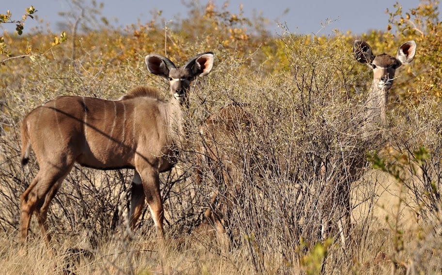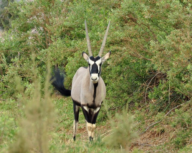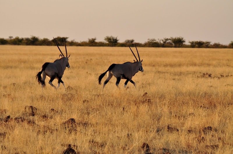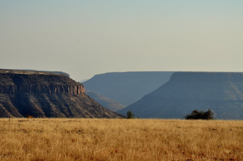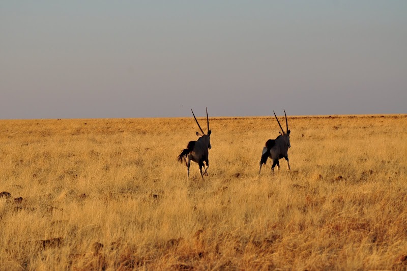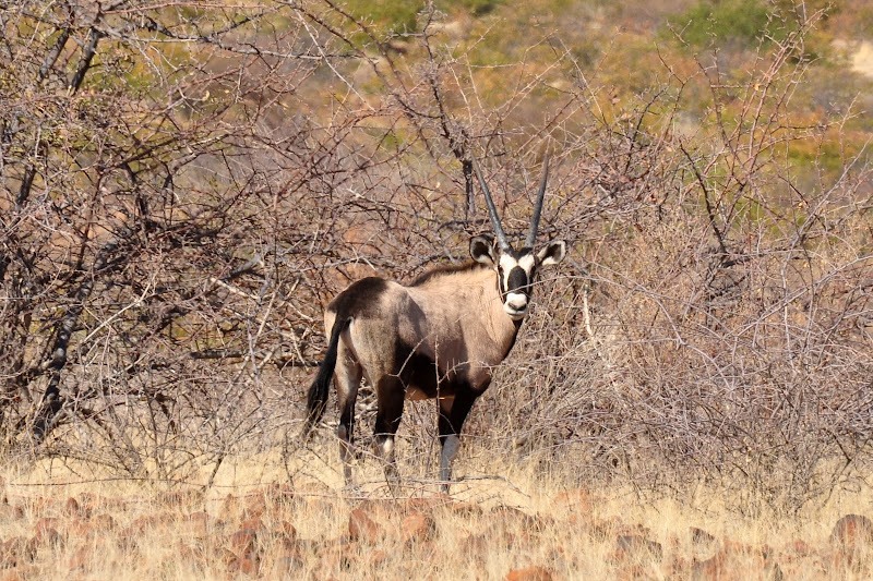 Comme nous sommes arrivés tôt nous ferons notre premier « game drive ». Dans un 4x4 équipé avec banquettes en escalier. Nous ferons le tour du propriétaire (20.000 hectares) sur le plateau. Nous verrons à profusion des oryx, springbocks et zèbres, plus quelques Koudous, point de félins mais une vue magnifique sur les vallées sous le plateau.