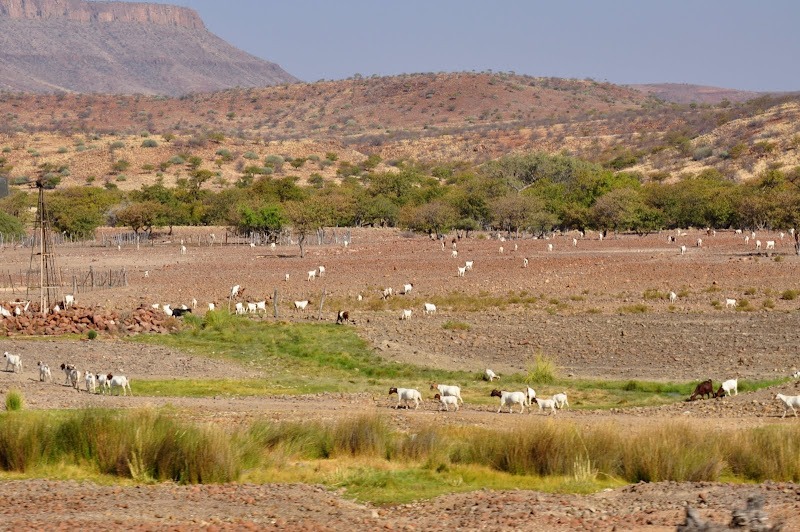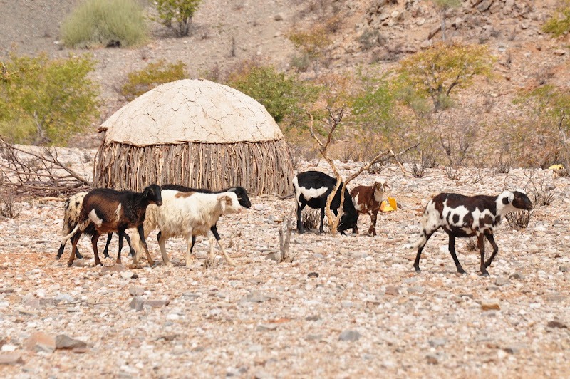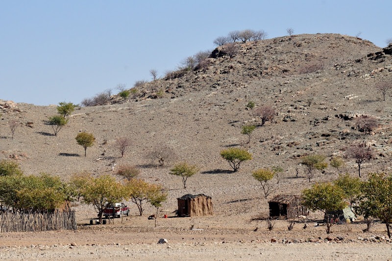 A environ 50 kms d’Opuwo on rentre dans une région plus peuplé. Toute proportion gardée, avant on avait croisé que quelques Himbas tous les 20 kms et 3 ou 4 voitures de tout le trajet. Il y a beaucoup de monde et d’animaux au bord et sur la route, il faut faire attention. C’est vrai que les pistes sont peu fréquentées alors autant les utiliser pour faire transiter le bétail !