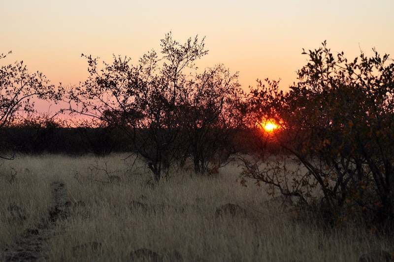Debout de bonne heure nous ferons un mini tour à proximité du lodge pour voir le soleil se lever sur la savane … et en espérant voir des animaux. Valérie a vue des empreintes de félins, on demande à un membre du staff ce que c’était et s’il y avait des risques « non ce n’est qu’une hyène » donc pas de problèmes.