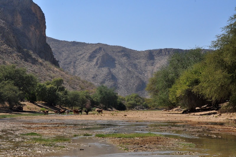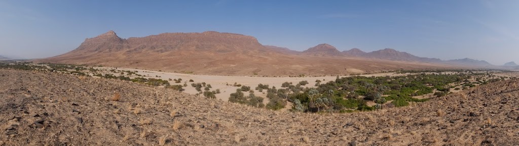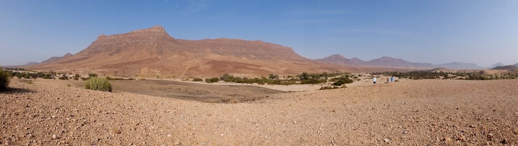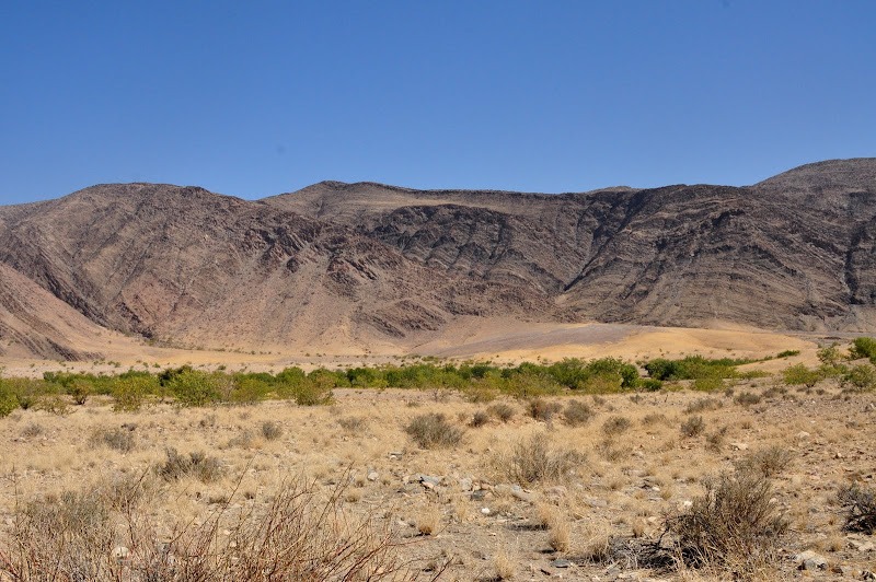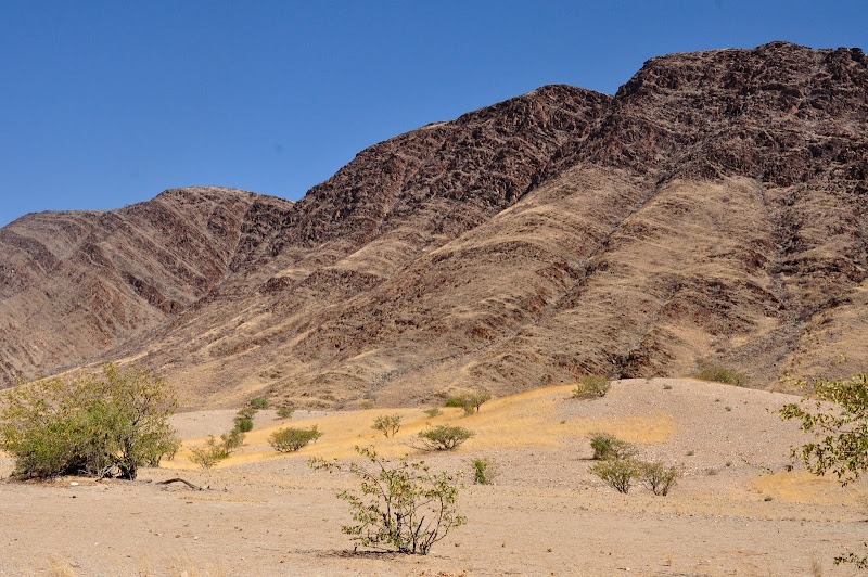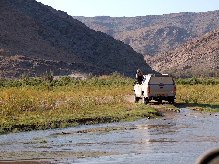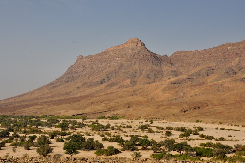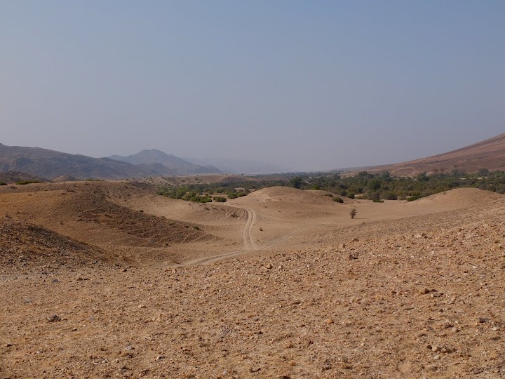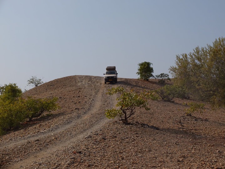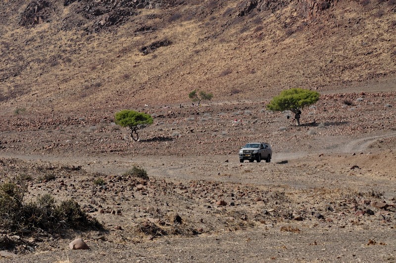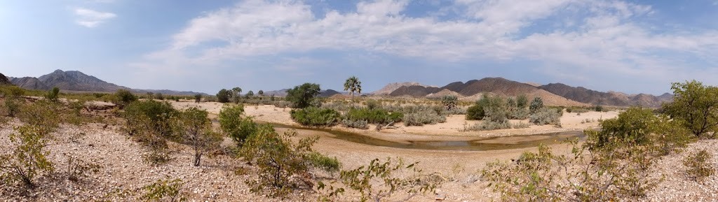 Aujourd’hui OFF ROAD, nous prévoyons de remonter la Hoarusib puis passer un petit col pour rejoindre la Khumib River, ensuite rejoindre la D3707 jusqu’à Opuwo. Soit 260 kms qui nous prendront tout de même 8h30 avec les arrêts. Ceci dit nous n’avons pas rencontré de grosses difficultés. La variété des paysages fait que le trajet ne parait pas trop monotone.