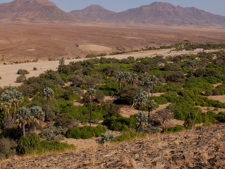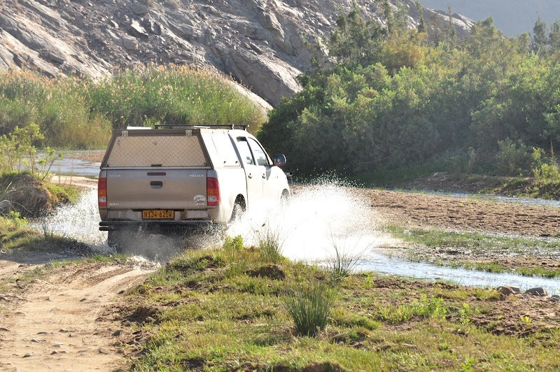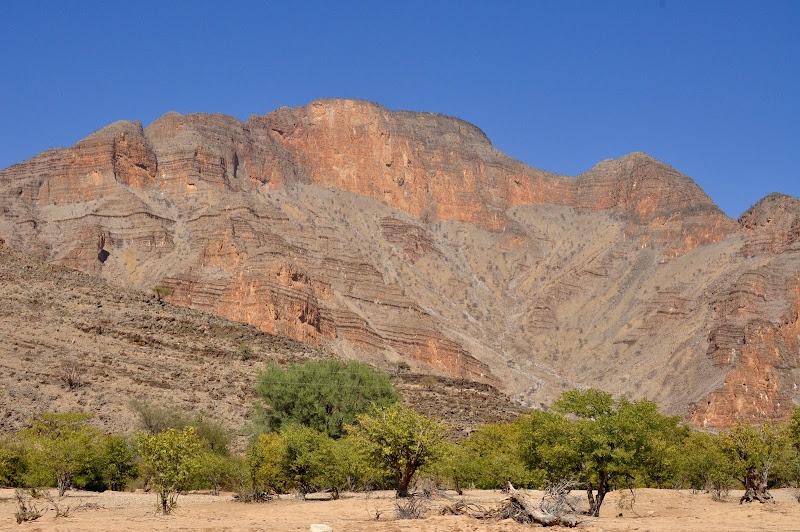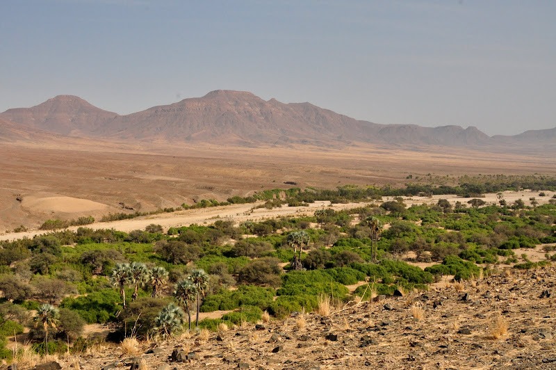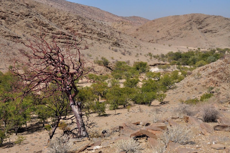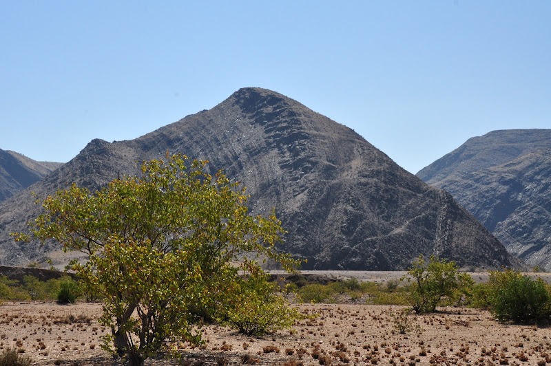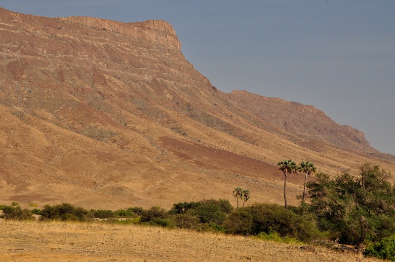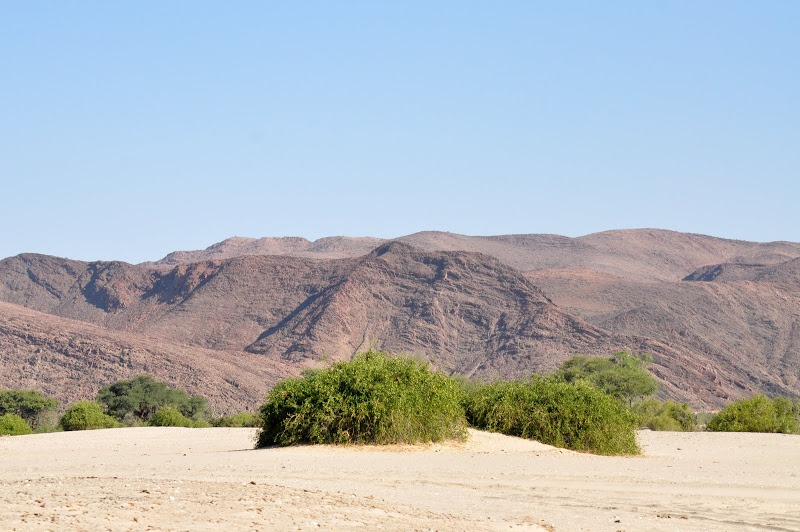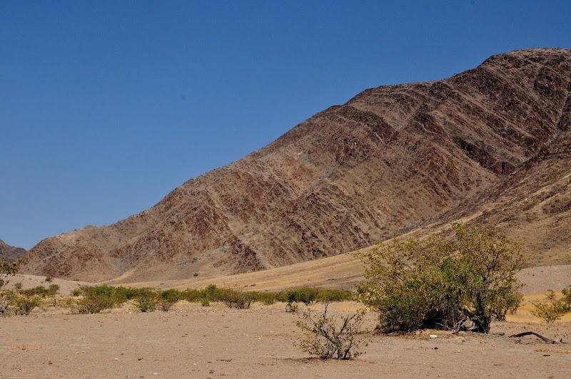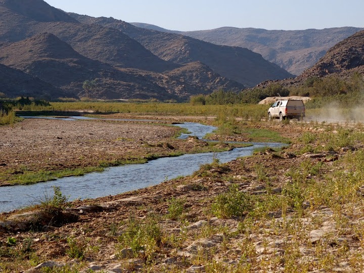 Aujourd’hui OFF ROAD, nous prévoyons de remonter la Hoarusib puis passer un petit col pour rejoindre la Khumib River, ensuite rejoindre la D3707 jusqu’à Opuwo. Soit 260 kms qui nous prendront tout de même 8h30 avec les arrêts. Ceci dit nous n’avons pas rencontré de grosses difficultés. La variété des paysages fait que le trajet ne parait pas trop monotone.