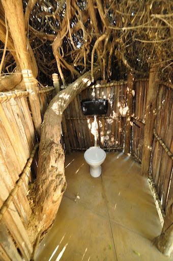 On se sent vraiment ailleurs, c’est somptueux. Et je ne vous parle pas du camping, le plus beau que nous ayons jamais vu, par exemple les blocs sanitaires sont cachés sous un petit bosquet, on ne voit rien de l’extérieur. Le camping est dans lit de la rivière et il peut y avoir des éléphants qui le traversent la nuit, cela donne quelques frissons.