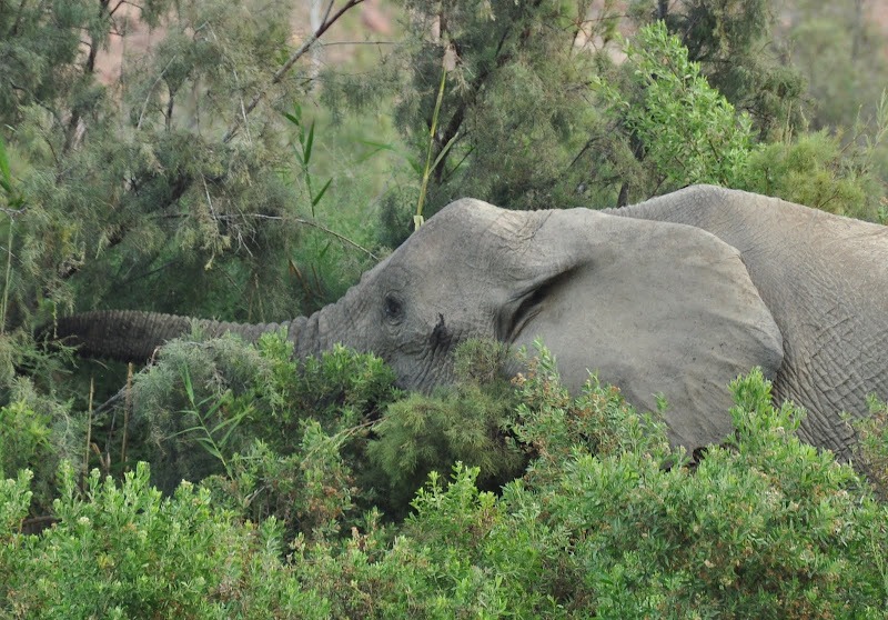 Comme nous sommes arrivés tôt (vers 14h30) nous prendrons un guide pour remonter le Canyon de Purros pour voir des … éléphants, bien sûr !