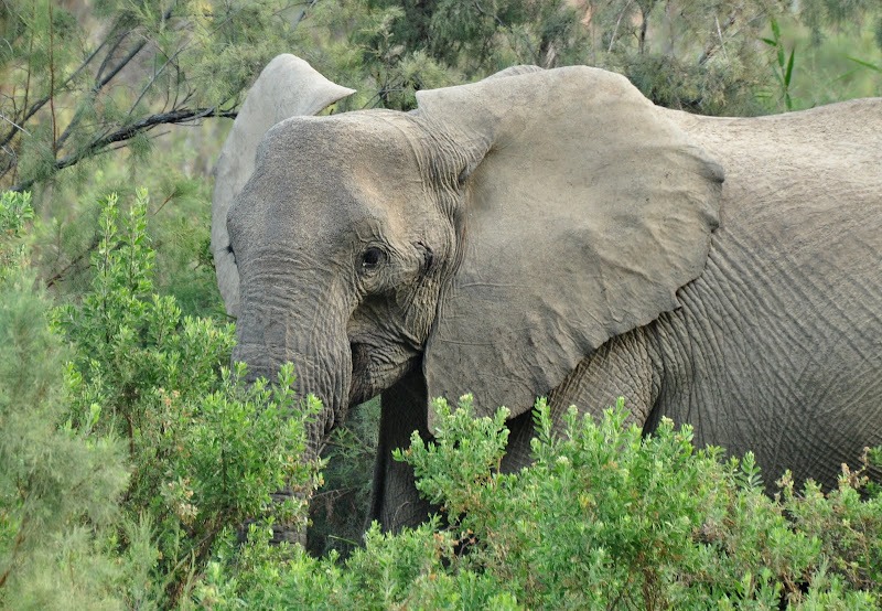 Le canyon est vraiment magnifique, la piste serpente le long de la rivière en la traversant de nombreuses fois ce qui est très amusant pour les conducteurs. D’après le guide il doit y avoir un groupe de 7 éléphants, nous n’en verrons qu’un seul et il nous tournera le dos pendant la ½ heure que nous passerons à le contempler. Pas grave l’endroit est tellement beau.