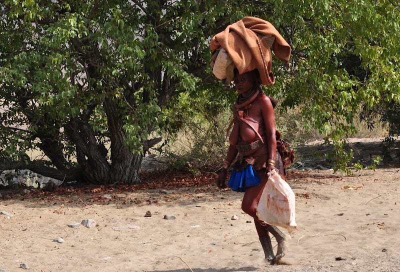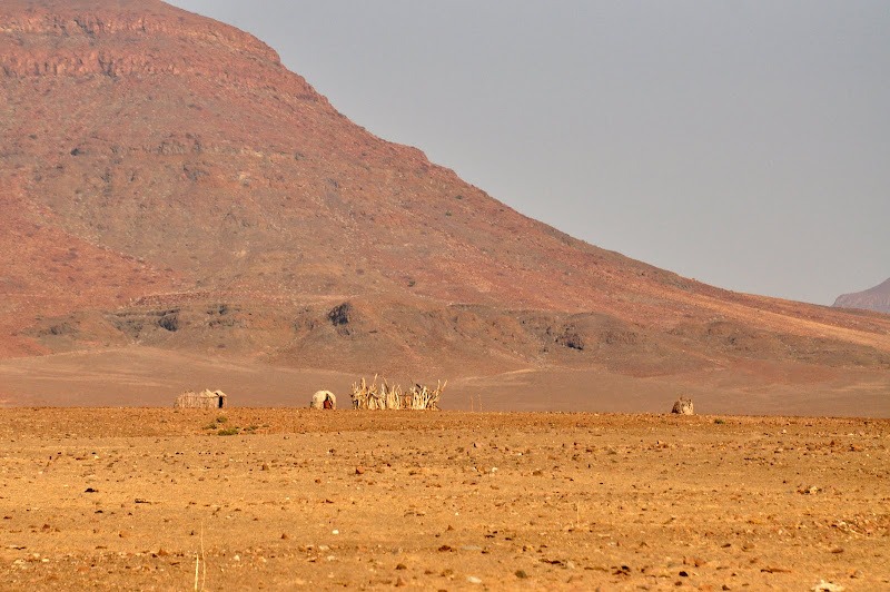 En revanche au niveau animal sauvage le bilan est bien maigre : des singes le long de la Hoarusib, quelques oryx et springbocks, c’est tout. Nous arrivons à Opuwo, capitale du Kaokoland et « centre de rencontre » des toutes les tribus et ethnies. Cela donne un ensemble hétéroclite et bigarré ; blancs, Himbas, Herrero, Ovambo, Noirs habillés à la mode occidentale se côtoient dans la poussière et la saleté. Les terrains sont jonchés de détritus (plastique et verre) les habitations poussent de façon anarchiques et le « centre ville » où il y a les principales échoppes ferait pâlir un souk Marocain.