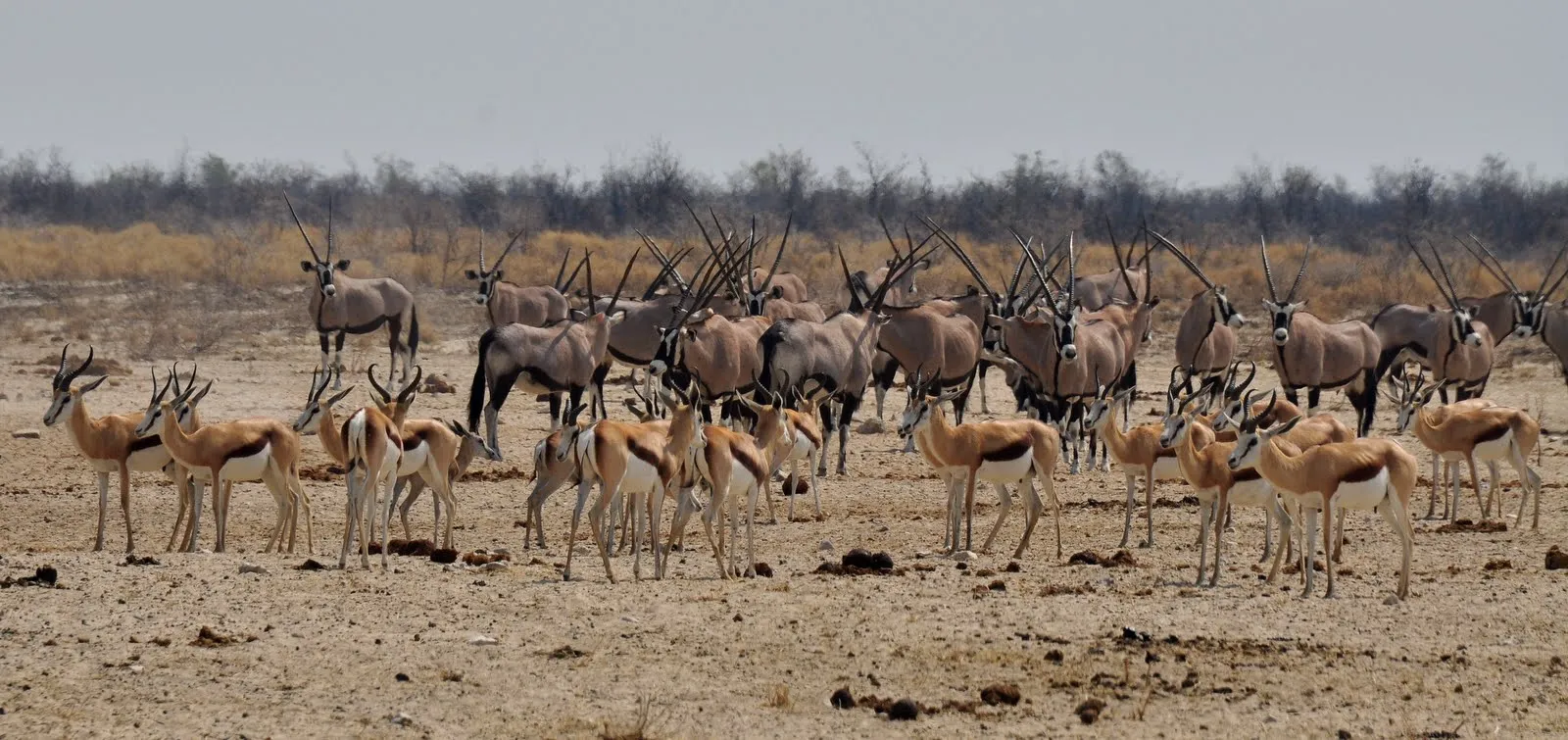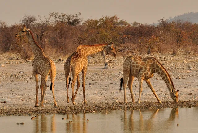Etosha est un grand Pan (ancien lac salé) entouré de prairies et de forêts très clairsemées. Pour les animaux il existe des points d’eau naturels ou artificiels, le « jeu » consiste donc à aller de l’un à l’autre en roulant très doucement et en cherchant des yeux l’animal rare tant convoité.