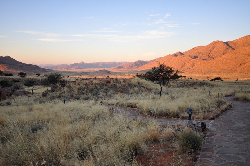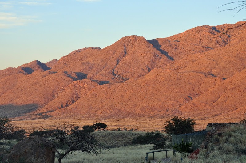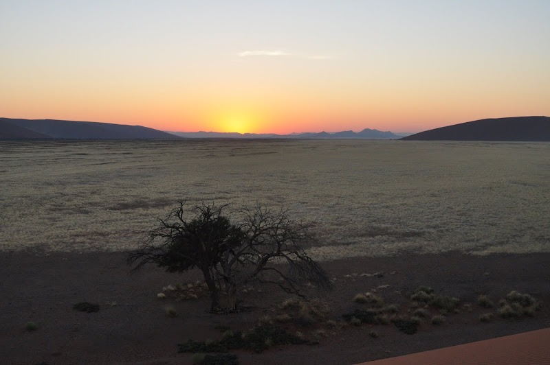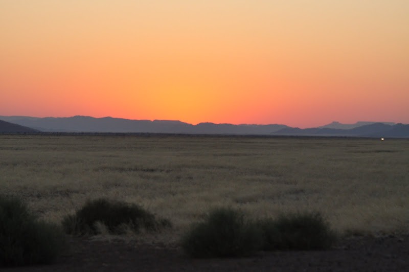 Retour au camping où nous finirons de monter la tente dans le noir (17h30 !). Ensuite nous sortons du parc pour aller retrouver nos amis et diner au Sossusvlei Lodge.