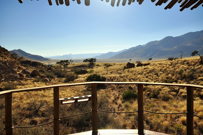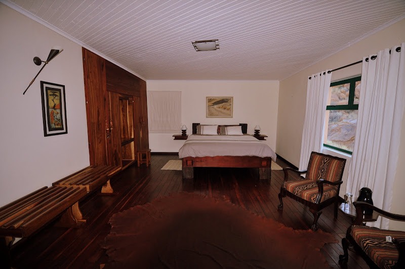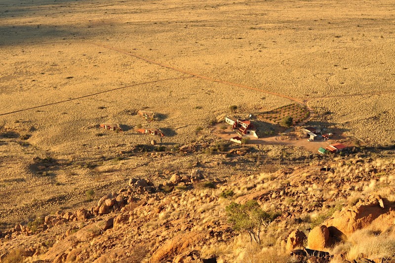C’est un vrai petit paradis, surtout pour Léonie puisqu’il y a des suricates, des chiens et surtout 3 chevaux dont un cheval peluche (ou ours comme elle dit). Les chalets et la maison des propriétaires est superbe, jusqu’au mobilier en bois des chambres. Comme c’est une maison d’hôtes l’accueil y est plus chaleureux que dans un hôtel, le repas délicieux et l’ambiance détendue et agréable, on aurait vraiment envie d’y rester plusieurs jours. Les propriétaires parlent Allemand, ce qui est pratique pour moi. Pour nous une des meilleures adresses de Namibie.