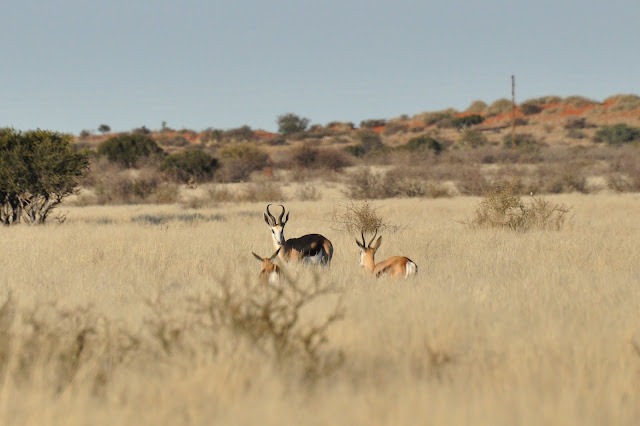 Ce tour nous permettra de voir de nombreux animaux, c’est qu’il est très peuplé le kalahari ; Springboks, Zèbres, Oryx, oiseaux.
