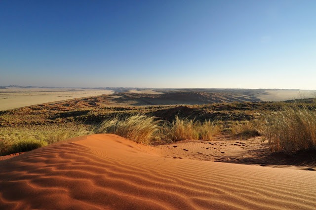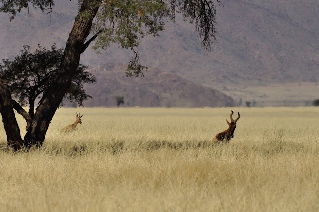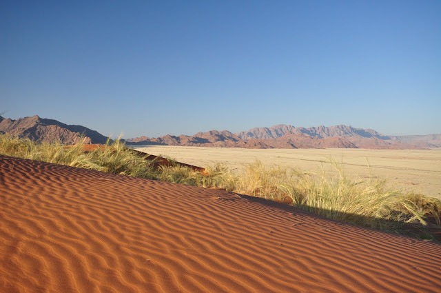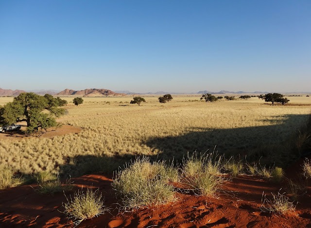 Nous partons plein Ouest direction le désert du Namib et Sesriem avec ses dunes orange, les plus grandes du monde parait-il. Les paysages sont beaux, immenses, vides à part quelques animaux, on traverse de temps en temps une « ville », elles sont très étendues avec très peu d’habitation, juste une station essence et une supérette. Il y a peu de circulation et on soupçonne que ce soit essentiellement des touristes.