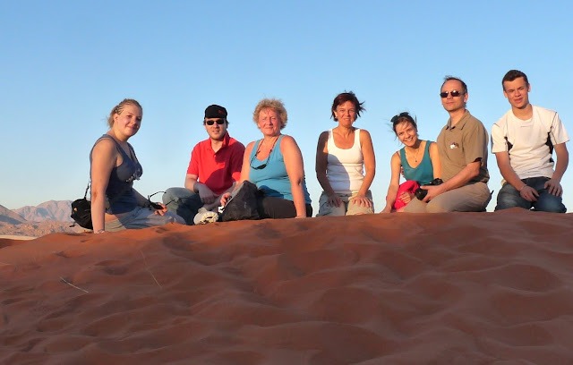 Après un repas léger type, on retrouve nos amis Belges avec qui nous faisons ce grand voyage (Jacqueline la maman grande organisatrice qui a énormément travaillé pour nous faire des fiches détaillées de nos dures journées de voyage, Virginie la fille toujours partante et souriante avec qui Léonie pourra échanger et Cedric le fils chauffeur, traducteur, photographe, chargé du talkie walkie, du Gps et de nombreuses autres tâches).