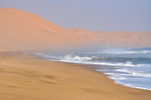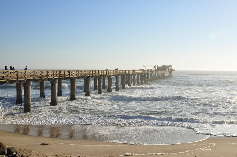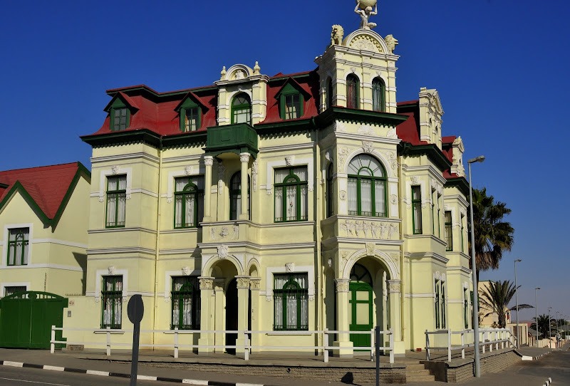 Au début la route est très belle avec la fin du Namib, puis un passage de petites montagnes pour finir sur une route toute droite et très monotone en gravillons. Nous finirons notre journée en visitant la station balnéaire germanique : Swakopmund. Tout y est noté en Allemand (ils proposent même du « gluehwein », ok c’est l’hiver, mais tout de même. La ville fait un peu kitch, façon Europa park. Nous n’avons pas beaucoup accroché.