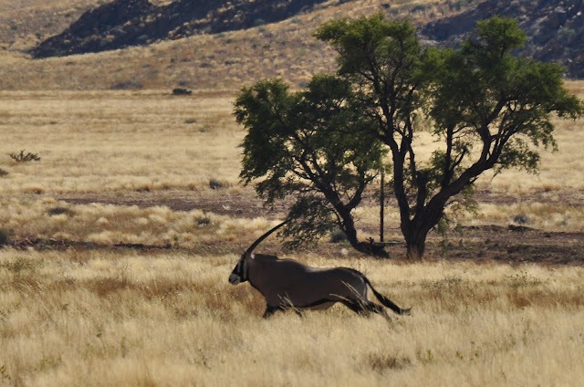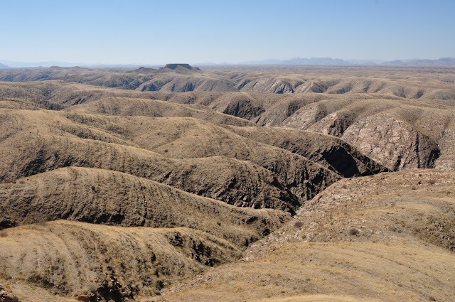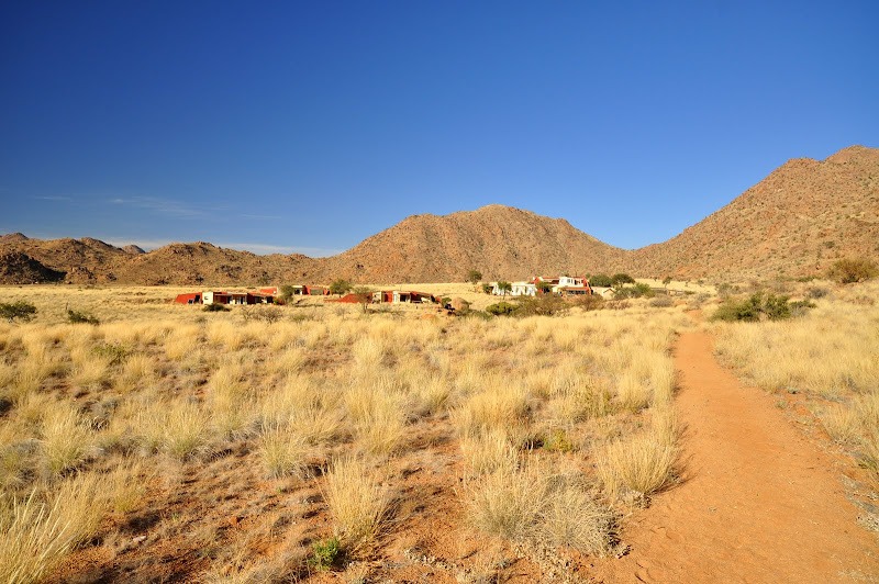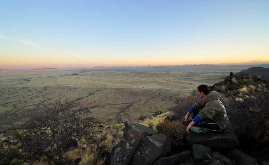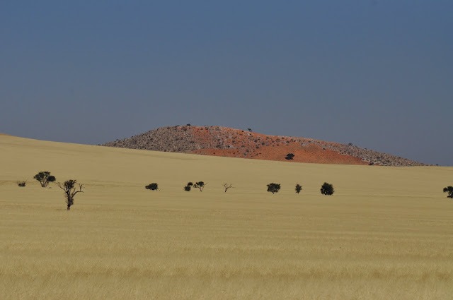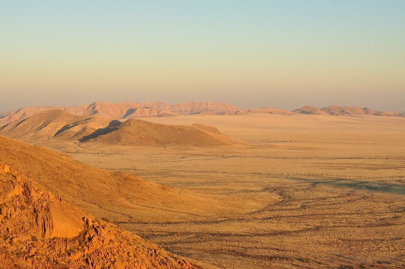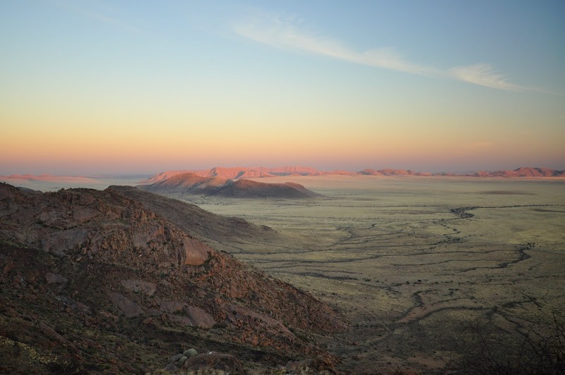 Le lendemain matin nous assisterons au lever de soleil depuis la montagne à laquelle est adossé le Lodge. Belle vue sur le Namib. Très bon petit déjeuner (confiture d’oranges maison, biltong gouteux,…) qui nous a permis d’envisager notre journée sous les meilleurs hospices.