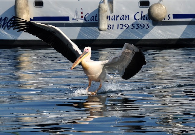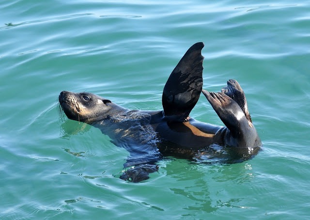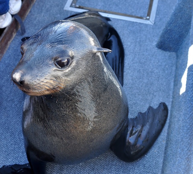 Nous avons un petit bateau où nous serons 17 personnes. Cela fait assez touristique mais très agréable tout de même. Nous aurons droit à l’otarie qui monte dans le bateau, au vol en rase motte de mouette et à l’amerrissage de pélicans. Ensuite nous longerons les parcs à huitres, exportées dans le monde entier sauf en Europe !