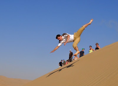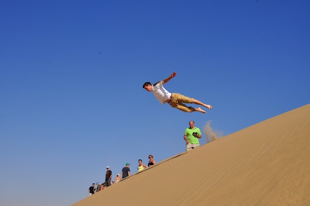 Le retour se fera par l’intérieur des dunes et là le chauffeur s’en donnera à cœur joie, montées descentes, les unes les plus vertigineuses que les autres, on a bien rigolé.