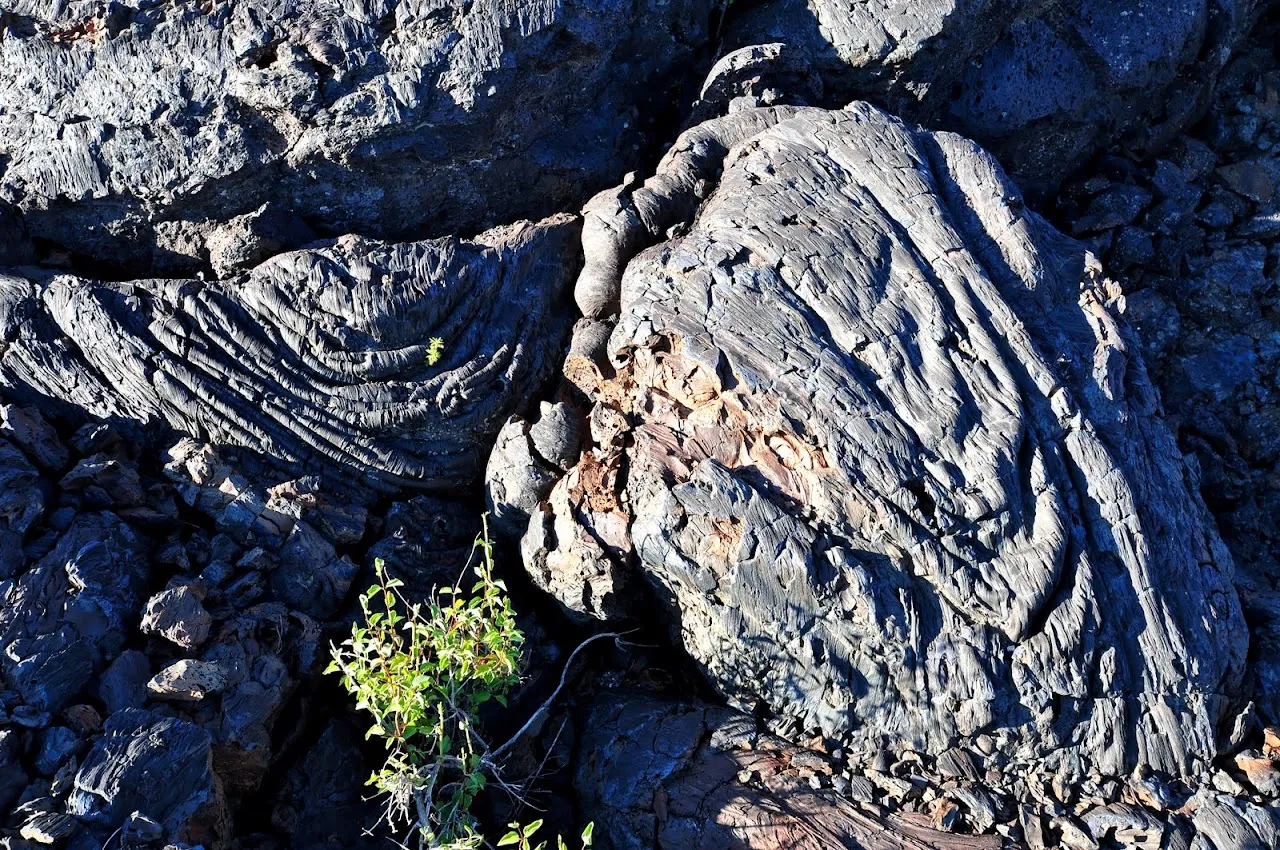 Très intéressant et à nouveau d’autres paysages. Nous marcherons sur un dôme volcanique de type Vezuvien, et dans deux mini cratères de type Hawaien. Partout des coulées de laves, c’est d’ailleurs étonnant d’avoir d’un côté les cendres des éruptions qui rencontrent les coulées torturées des cratères Hawaien.