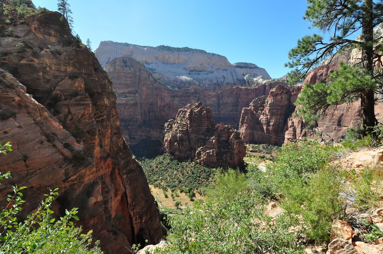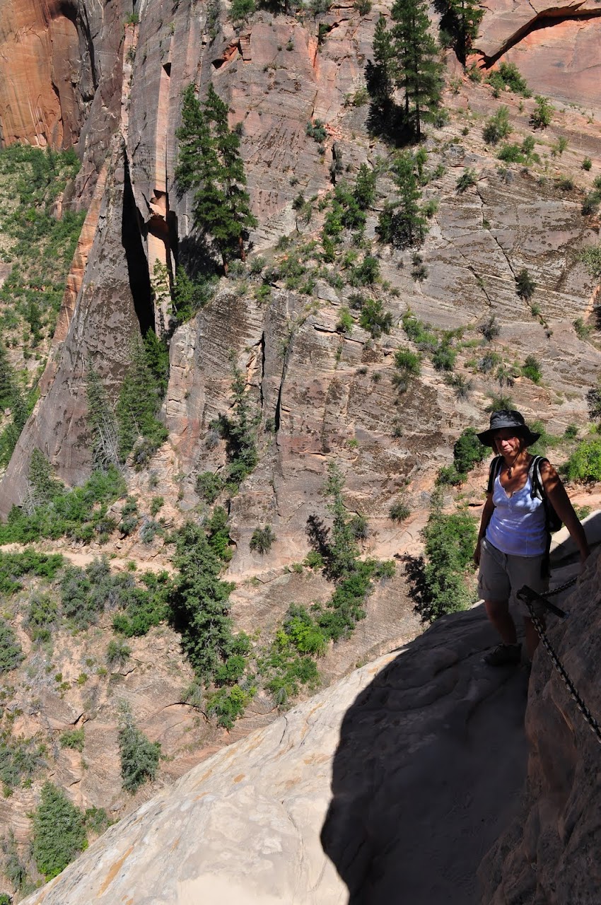 J’ai eu une bonne impression, même si au début la montée abrupte sur des lacets en plein soleil rebute ensuite c’est vraiment très bien. A partir du moment où on quitte Observation Point Trail on continu à monter en lacets, mais à l’ombre, ensuite on suivra un étroit sentier creusé dans la falaise avec des chaînes pour se tenir (impressionnant).