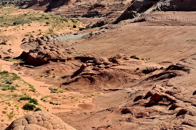 Comme nous n’avons rien trouvé nous avons déjeuné sur le parking de notre ballade suivante. Le parking de Wire Pass est déjà beaucoup plus fréquenté, au moins … 5 voitures. Nous avons déjeuné dans la voiture.