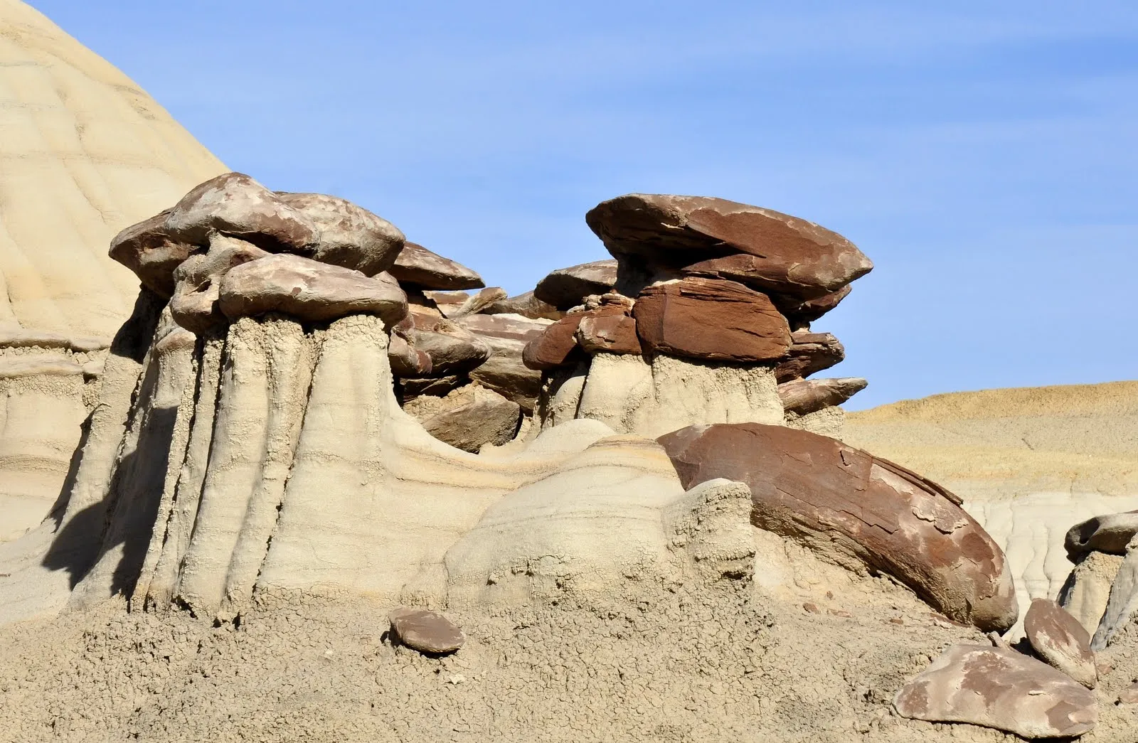 Après Chaco Culture un petit peu de Wilderness histoire de varié les plaisirs. Nous ferons donc un crochet par Ah Shi Sle Pah (non ce n’est pas mon clavier qui déconne !) à la recherche de nids de Hoodoos perdu au milieu de nulle part. Après avoir garé la voiture on se dirige au Gps car on ne voit rien de spécial, 300 mètres plus loin le plateau est complètement érodé et on voit à nos pieds pleins de Hoodoos, superbe. Nous descendrons dans le canyon et nous promènerons dans ce paysage irréel, surtout du côté Est pour éviter les contre jours (environ 1h30).