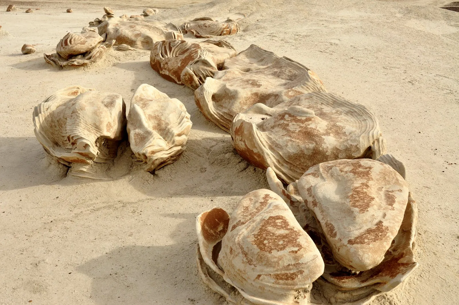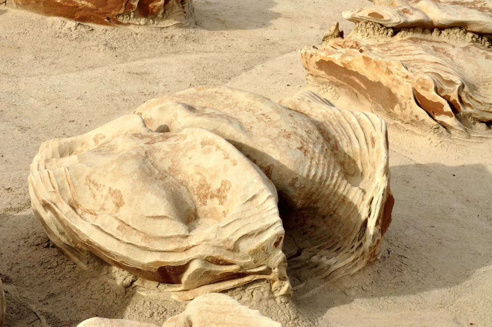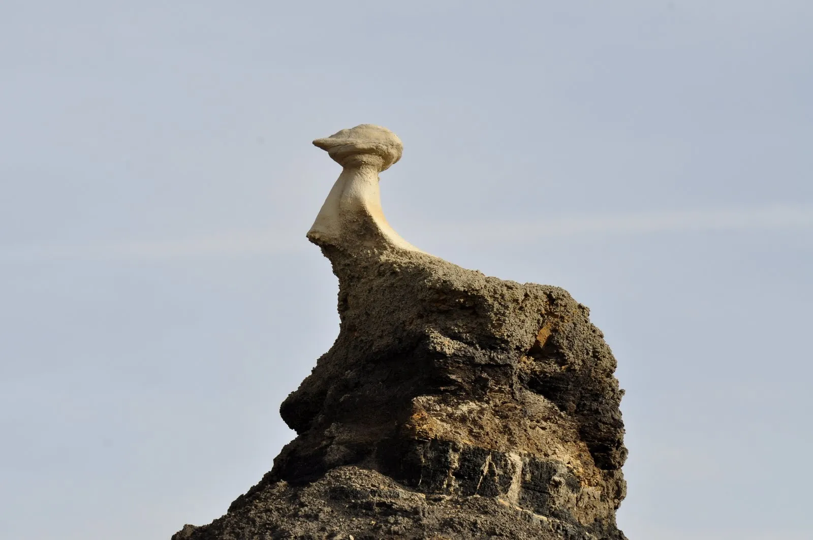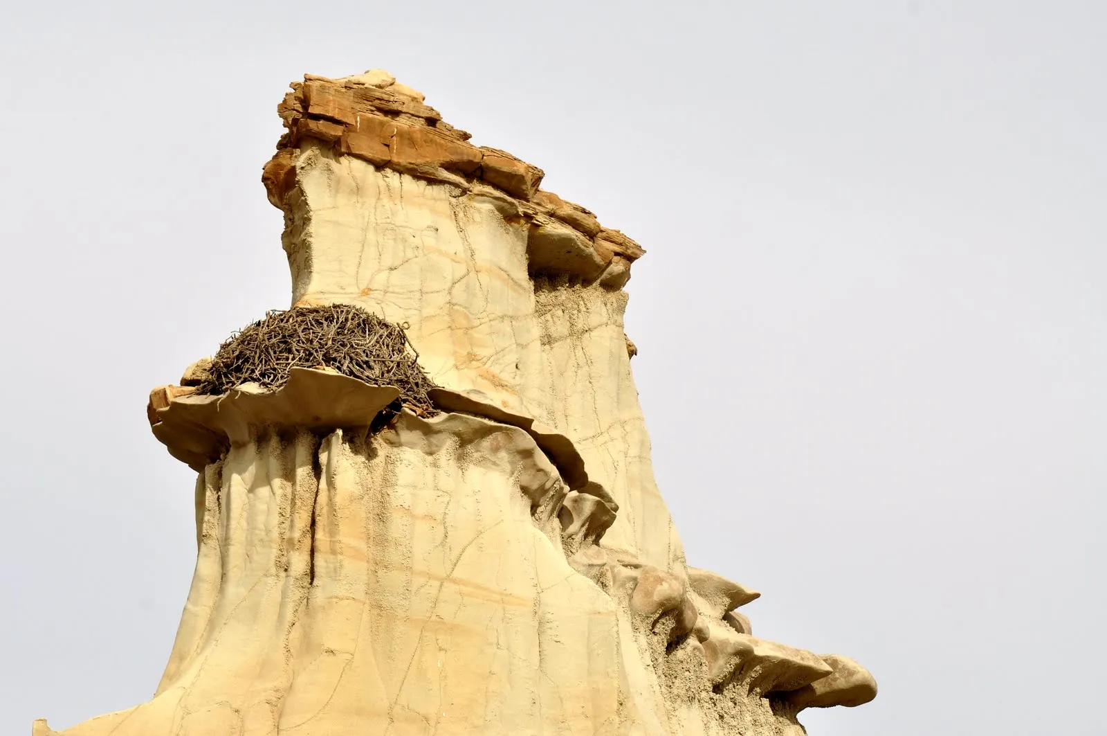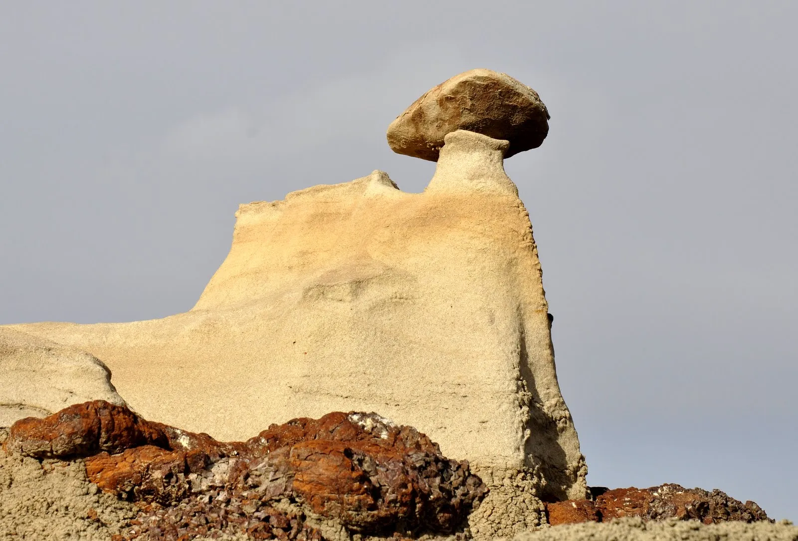 On crapahutera surtout du côté sud en nous dirigeant en zig zag vers les Crackers Eggs, il y a plein de « nids » de Hoodoos blancs, superbe. Ca y est la plaine des dinosaures, ces fameux qui sont en grande partie à l’origine de notre venue dans ces contrées. Très sympa, nous continuerons vers l’Eagle Nest en chemin nous tomberons en admiration devant un tronc d’arbres pétrifié qui a formé sous lui un Hoodoos, presque aussi impressionnant que les œufs. Ensuite nous tournicoterons autour du nid avant de chercher l’Arche, l’énoooorme arche … heureusement que nous avions un Gps car même à 10 mètres on ne l’aurait pas vu !