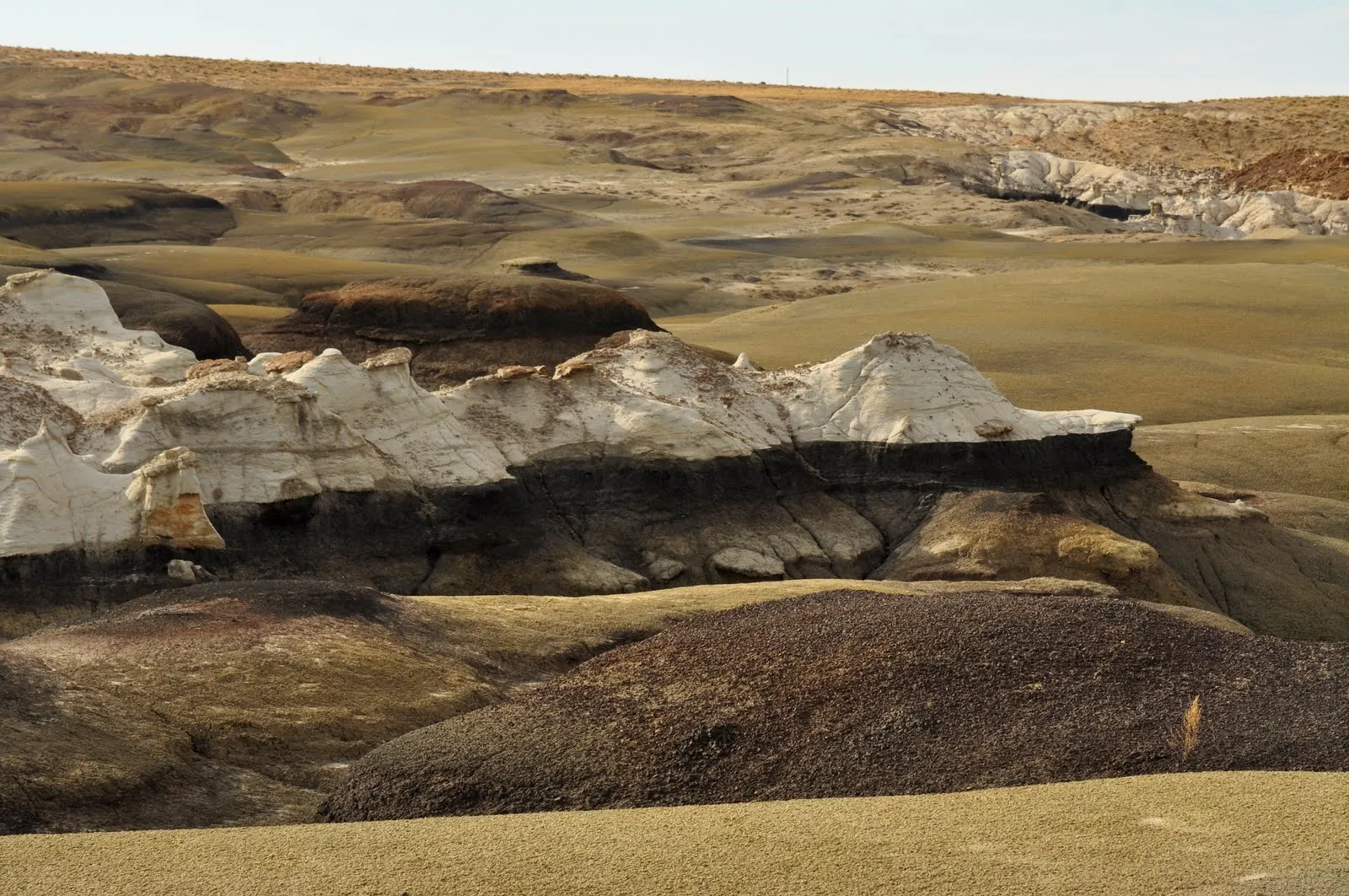Aujourd’hui Wilderness au programme. Pas de chance le temps est voilé, bon il fera moins chaud ! En route pour Bisti et ses œufs. Toujours tout droit, à gauche puis à gauche et nous voilà sur un petit parking au milieu de nulle part … encore me direz-vous. J’allume le Gps de rando, merci The Spartiate, et en avant.