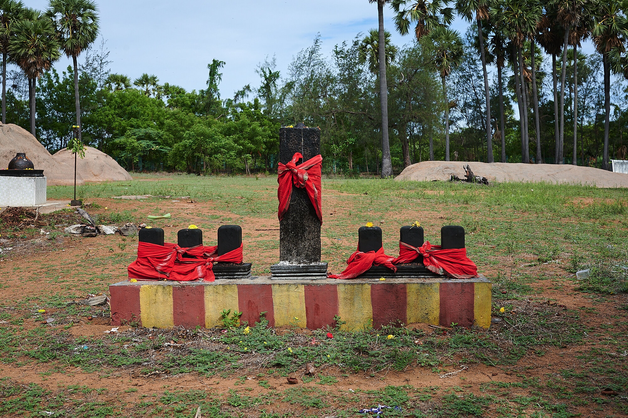 On continue notre route vers Pondichéry. Petit arrêt pour un nouveau site animiste près d’un village. On en profite pour traverser le village à pied. Rencontre avec des personnes ramassant le sésame noir, on goute les petites graines.