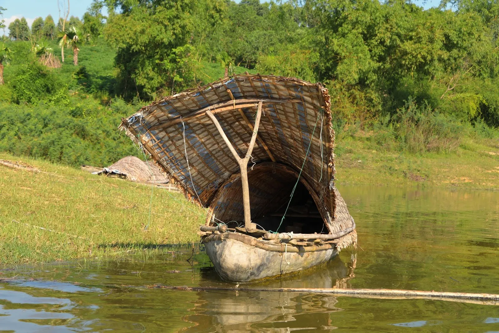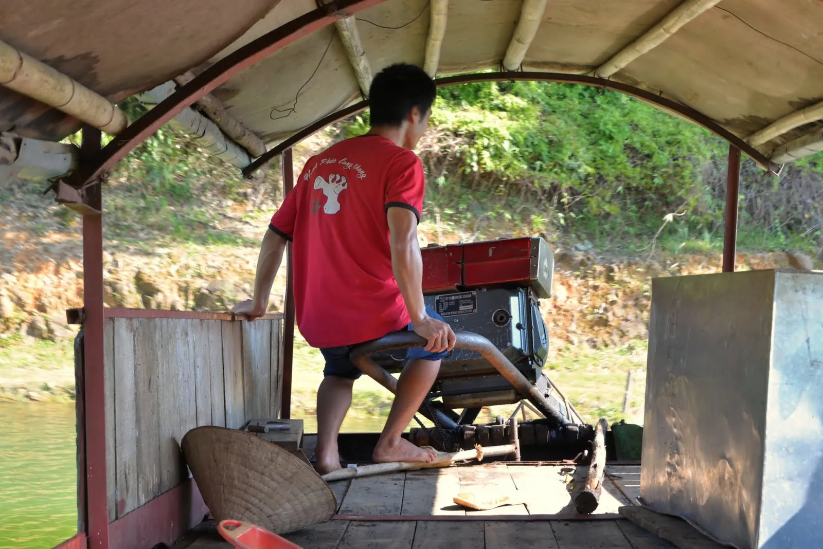 Après un moment de détente le fils, Hoan, nous amèneras faire un tour en barque. Heureusement que celle-ci est équipée d’un dôme car il fait très chaud et le soleil est brûlant.