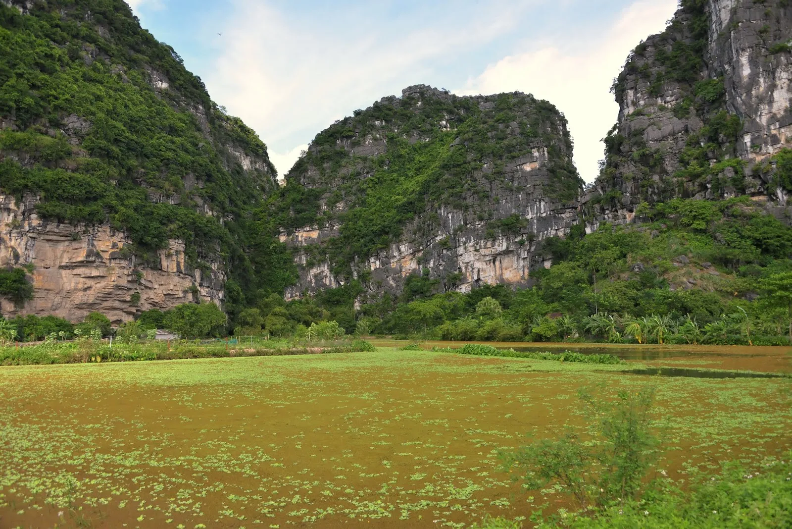 Tout le monde a bien suivi ? … donc exit la baie d’Ha Long et direction Ninh Binh, surnommée la baie d’Ha Long terrestre. En effet c’est également un relief karstique, sauf qu’à la place de la mer ce sont des rizières. Enfin, c’est vite dit, car le niveau de l’eau dû aux inondations y est élevé et on voit donc énormément d’eau.