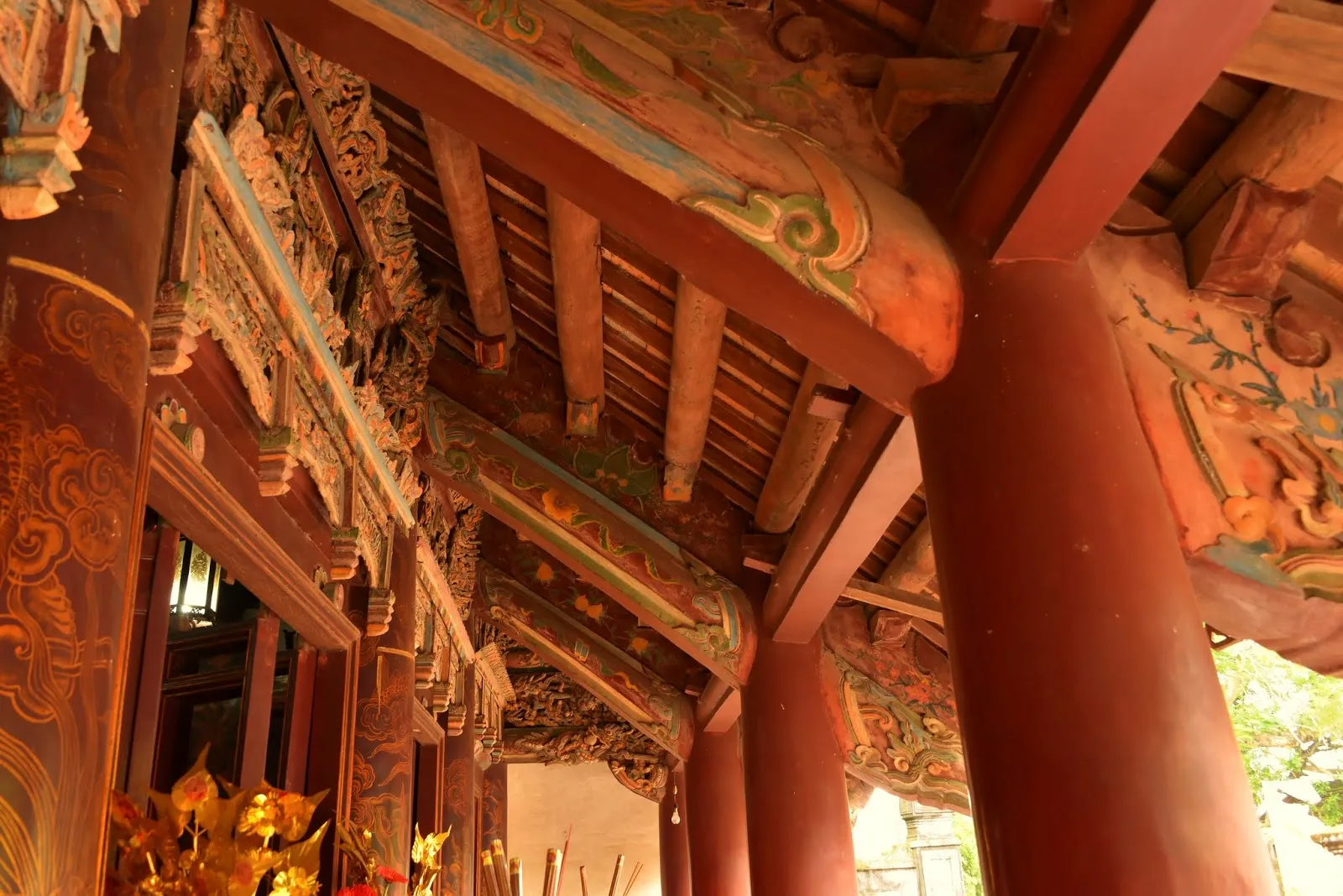 Bien nous en a pris car elle fut de courte durée et la journée s’est déroulée sous le soleil. Nous ferons un tour dans un charment petit temple (Thai Vi) tenu par un bonze qui nous a fait une démonstration de monocorde, instrument typique du Vietnam.